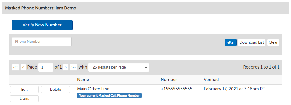 7. The page will automatically redirect to display the new verified phone number, and will be your new default number.