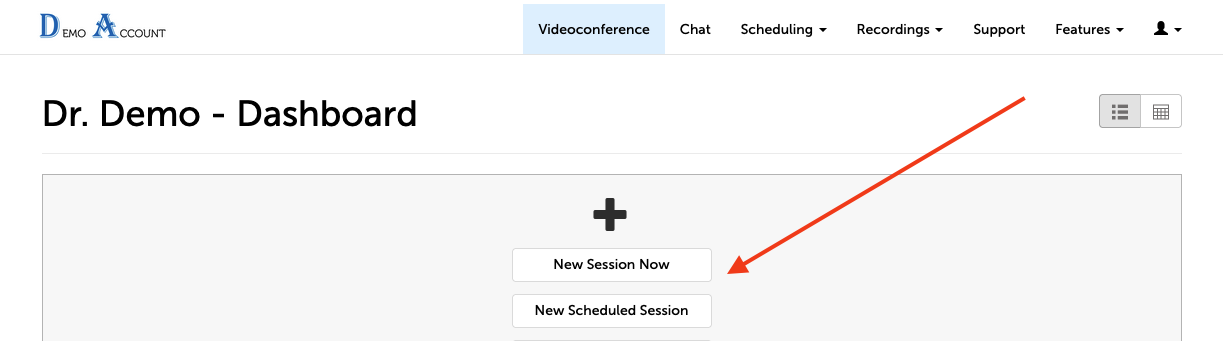 1. On the Dashboard, use the scheduling buttons and select either "New Session Now" or "New Scheduled Session"