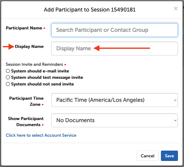 Adding a Display Name when scheduling a session